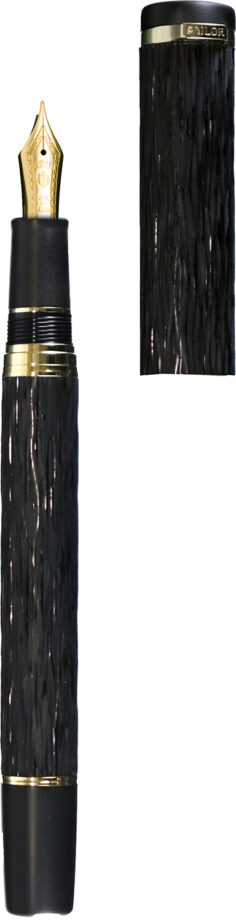 万年筆のボディに最適な素材といわれているエボナイトを一本一本丁寧に削り出し、3種の夜を表現した機械彫刻やブラスト加工は、握りの良さ、感触の心地良さを楽しめる一本です。