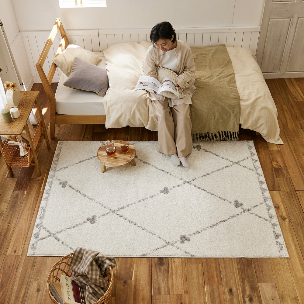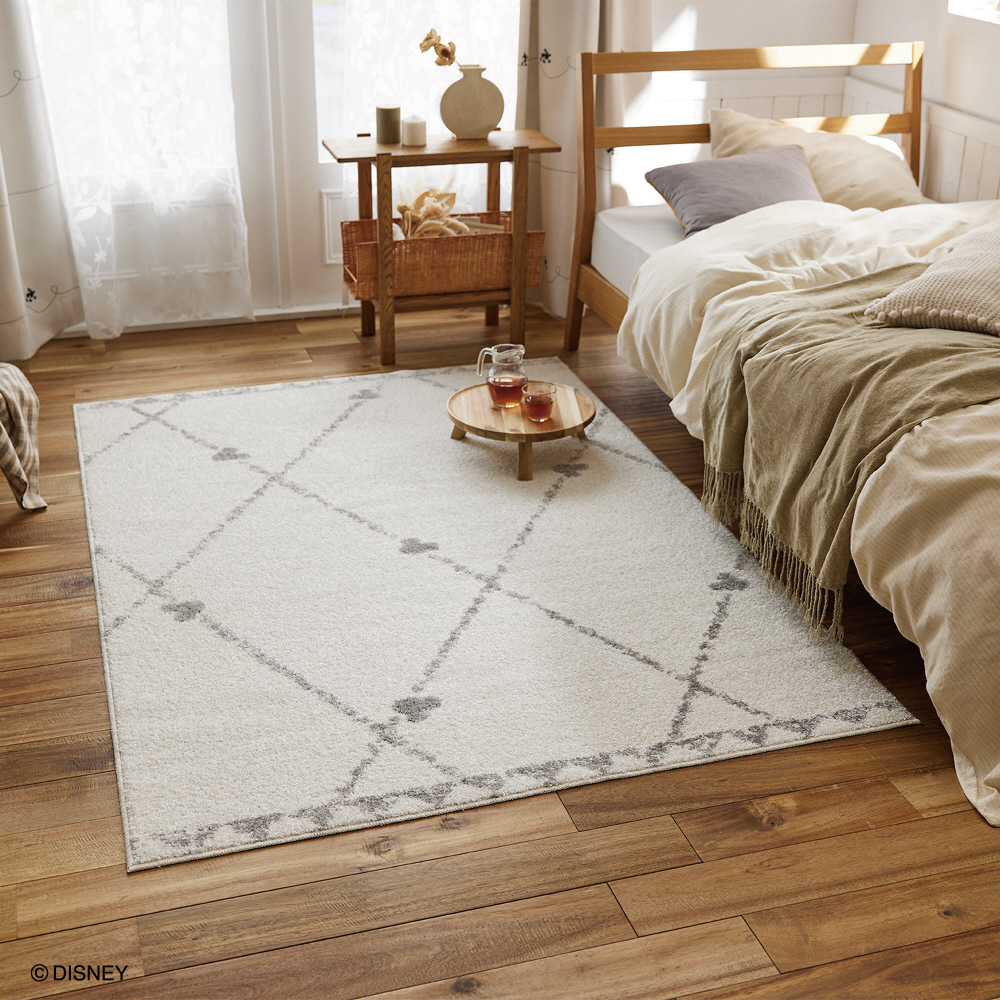 シンプルに描かれたライン上にミツマルがちりばめられたラグです。