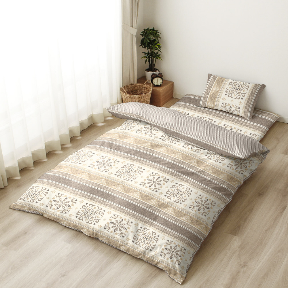 肌ざわりの良い綿混素材の敷ふとんカバー!!L字ファスナーで楽々簡単取り付け♪エスニック模様とギンガムチェックのリバーシブル仕様で気分に合わせてお使いいただけます。掛ふとんカバーもあるのでコーディネートして使うのもオススメです♪