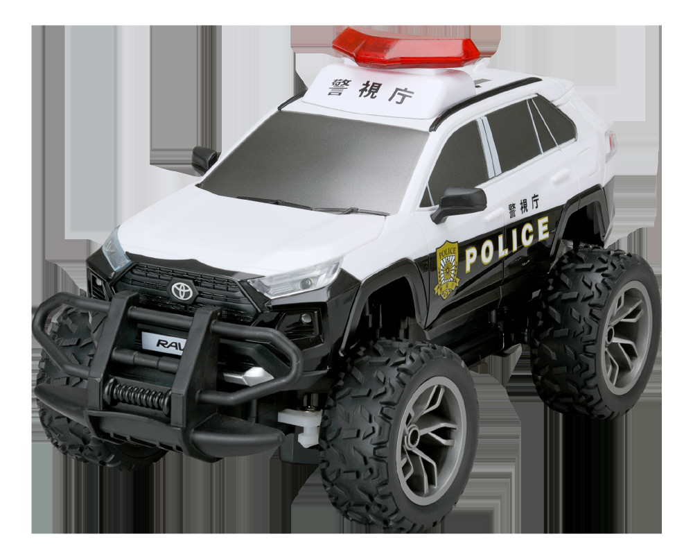 高い防水性能を搭載して強靭なパトカーに仕上げました。パトライトを点灯して悪路や水たまりを激走し犯人を追いかける抜群の走破性!
