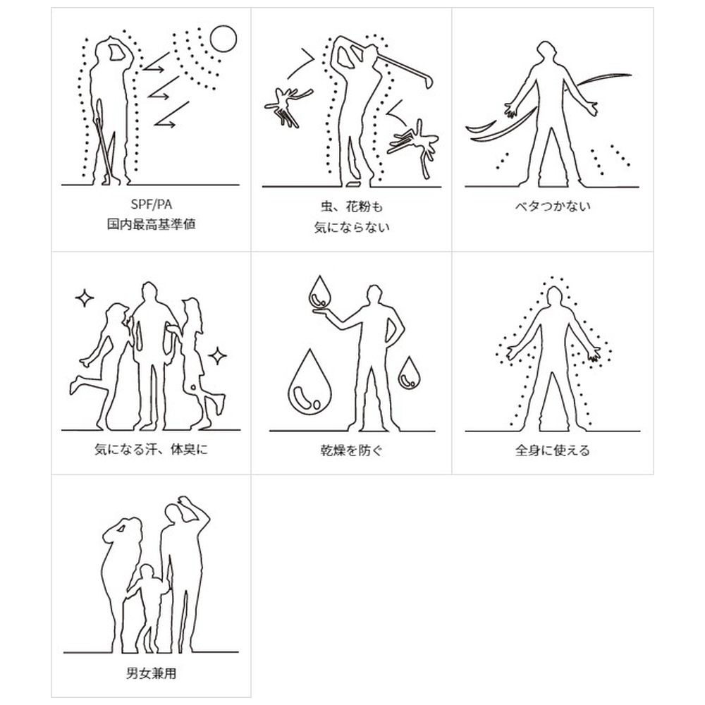 仕様2 SPF50+・PA++++、汗・水に強い、虫・花粉対策成分配合、せっけんで落とせる