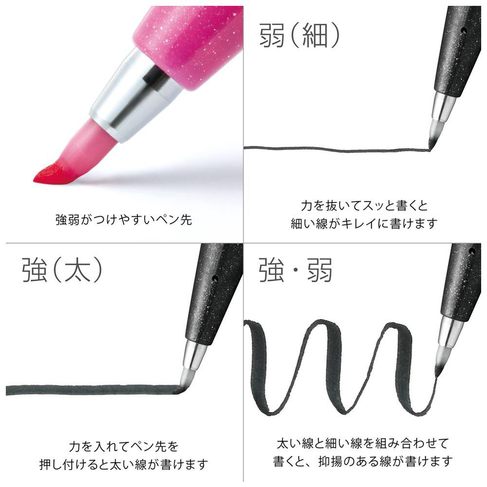 ロングセラーのぺんてるサインペンに、筆のタッチ感をプラス。