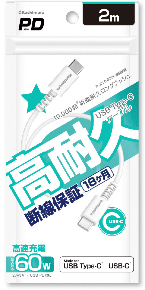 USB-C ⇔ USB-Cケーブル [充電 /転送 /2.0m /PD60W /USB2.0] ホワイト AJ-644 [USB-C ⇔ USB-C]