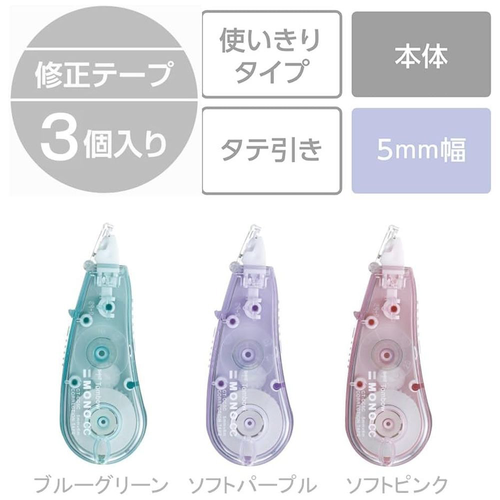 修正テープ ソフト3Pパック [5mmx6m/使い切りタイプ] MONO CC(モノCC) KCB-328X