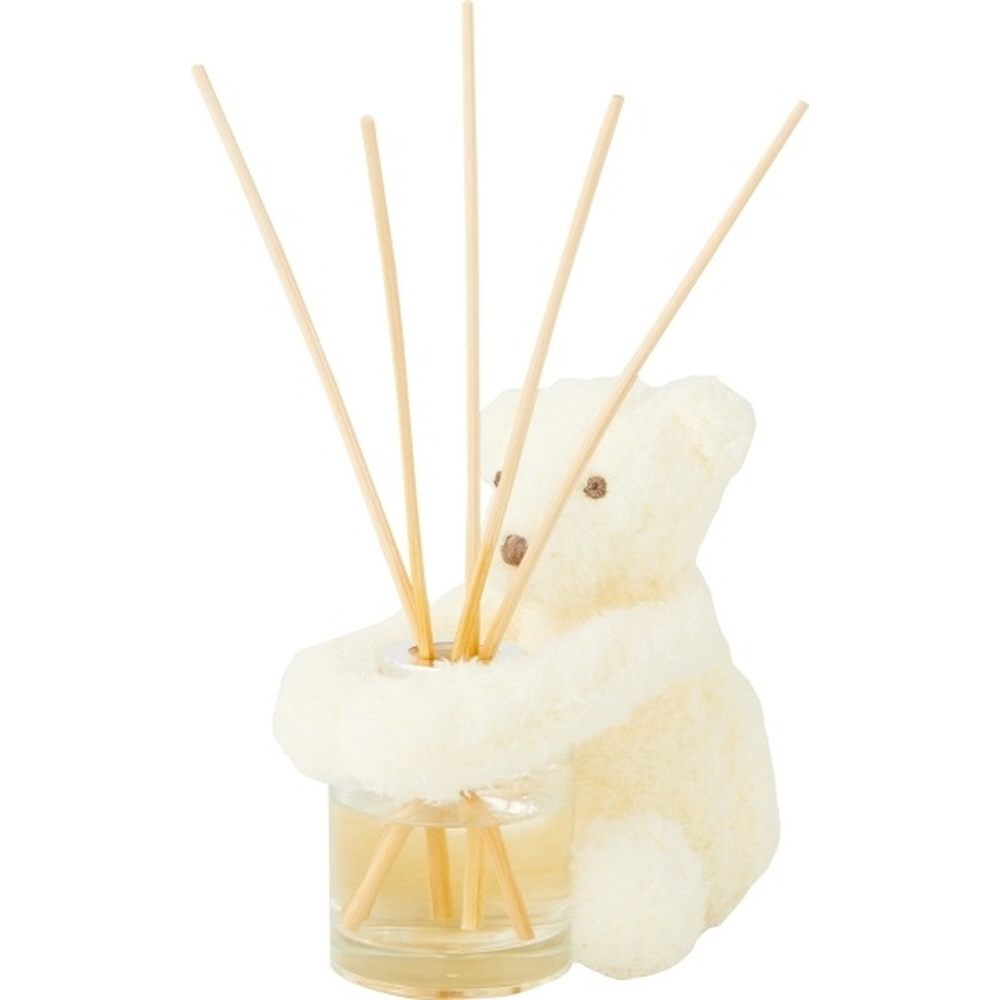 ディフューザーをぎゅっと抱きしめる愛らしいテディベアは、お部屋のマスコットに。フルーツのやさしい香りも癒しポイントです。
