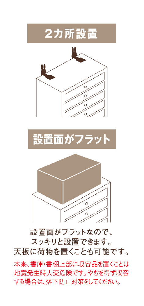 十分な強度があり、書庫や冷蔵庫等の家具・家電への対策に最適です。