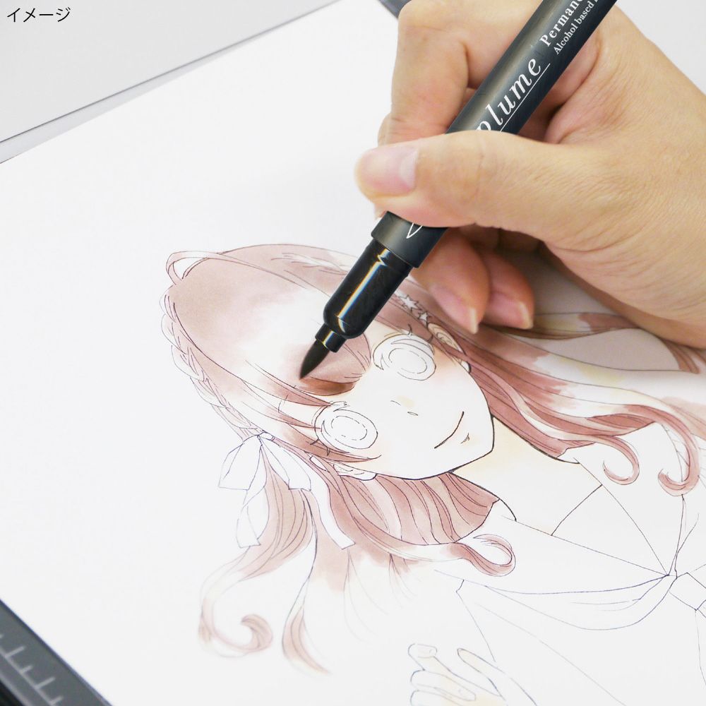 多色のアルコールカラーインクとブレンダー(カラーレスインク)。ソフトでしなやかなペン先(ニブ)は自由なアートを表現できます。
