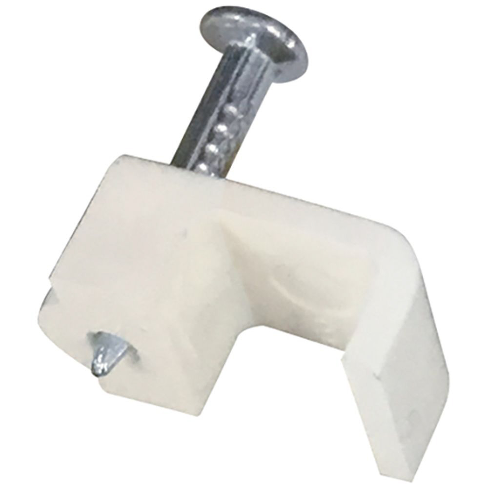 ■ステップルに電線をはめ込んでから、釘を打ち固定します。