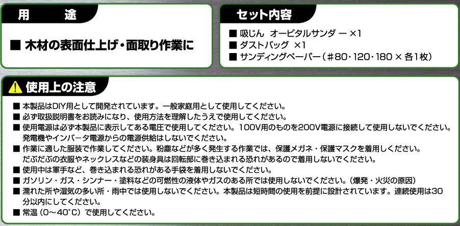 ●ダストバッグ ●サンディングペーパー#80・120・180×各1枚