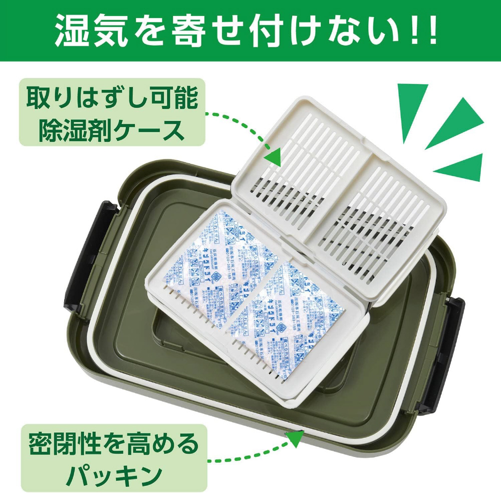蓋の内側のケースに付属の乾燥剤を収納、ボックス内を強力に乾燥させます