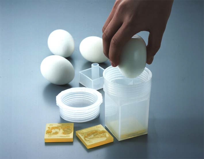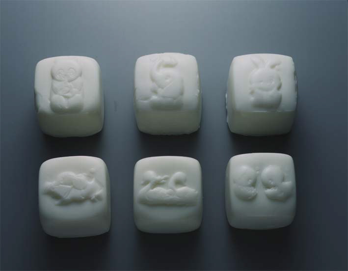 四角いゆで卵の面に動物の模様が浮き出ます。