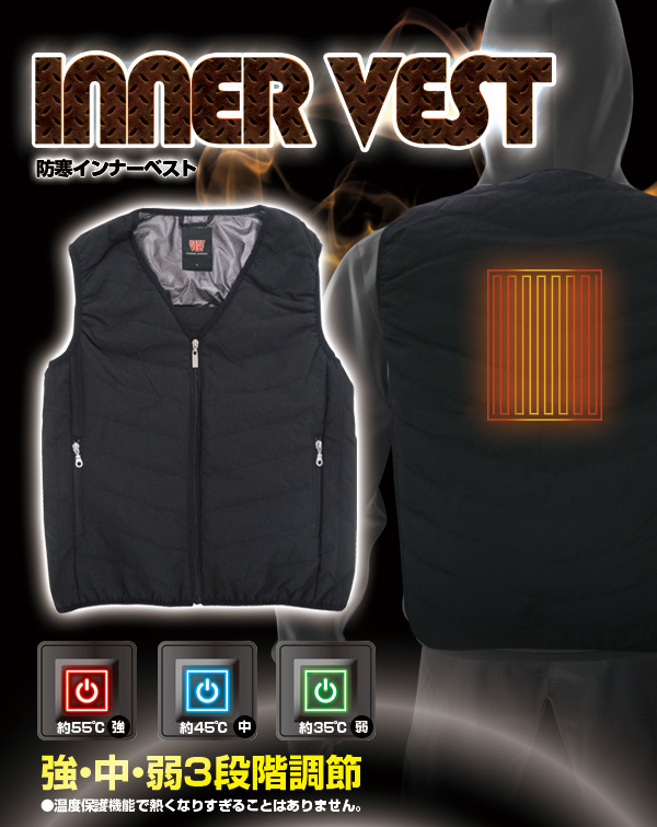 ヒーター内蔵可能型中綿入り防寒インナーベスト Vネック ブラック XL BRAIN