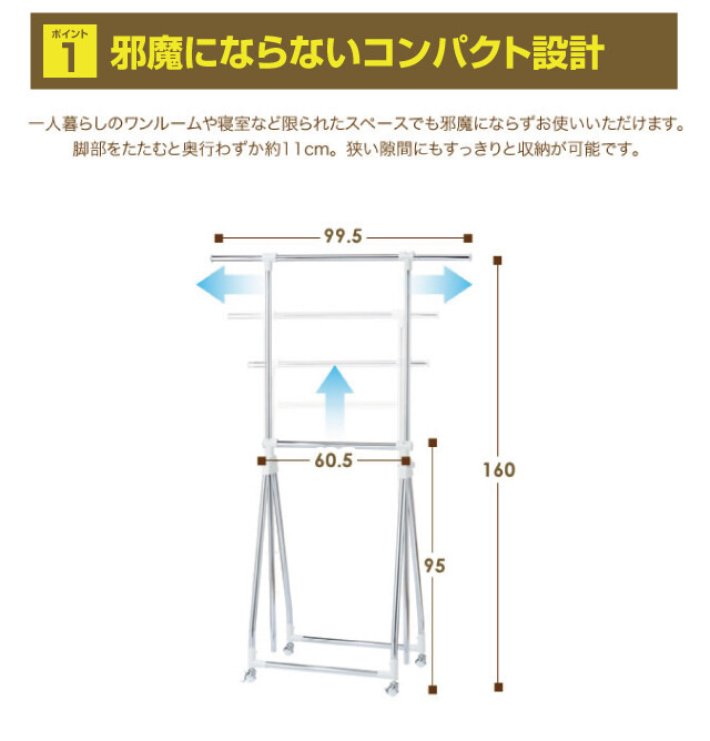 ●サイズ:使用時/(約)幅60.5?99.5×奥行48×高さ95?160cm、収納時/(約)幅60.5×奥行11×高さ97cm