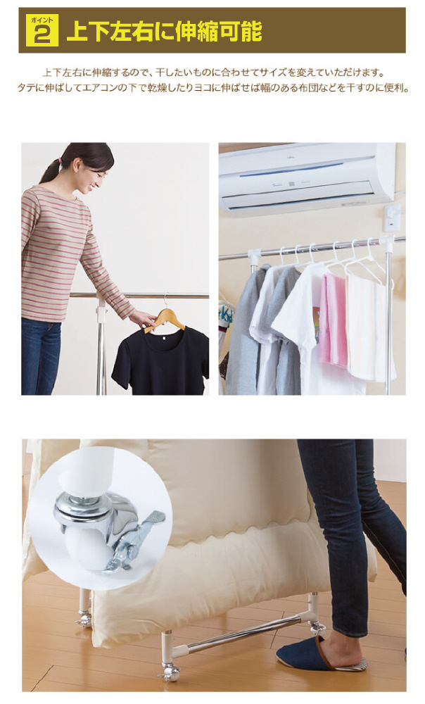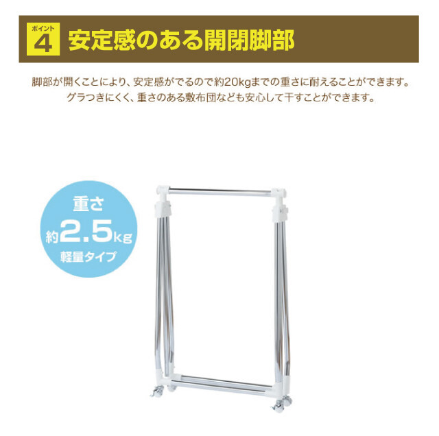外に干せない時もお部屋でサッと開いて洗濯物や布団を干せます。