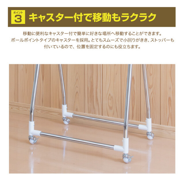 ●素材/パイプ:スチール(クロームメッキ)、ジョイント:ポリプロピレン樹脂、キャスター:スチール・ポリプロピレン樹脂