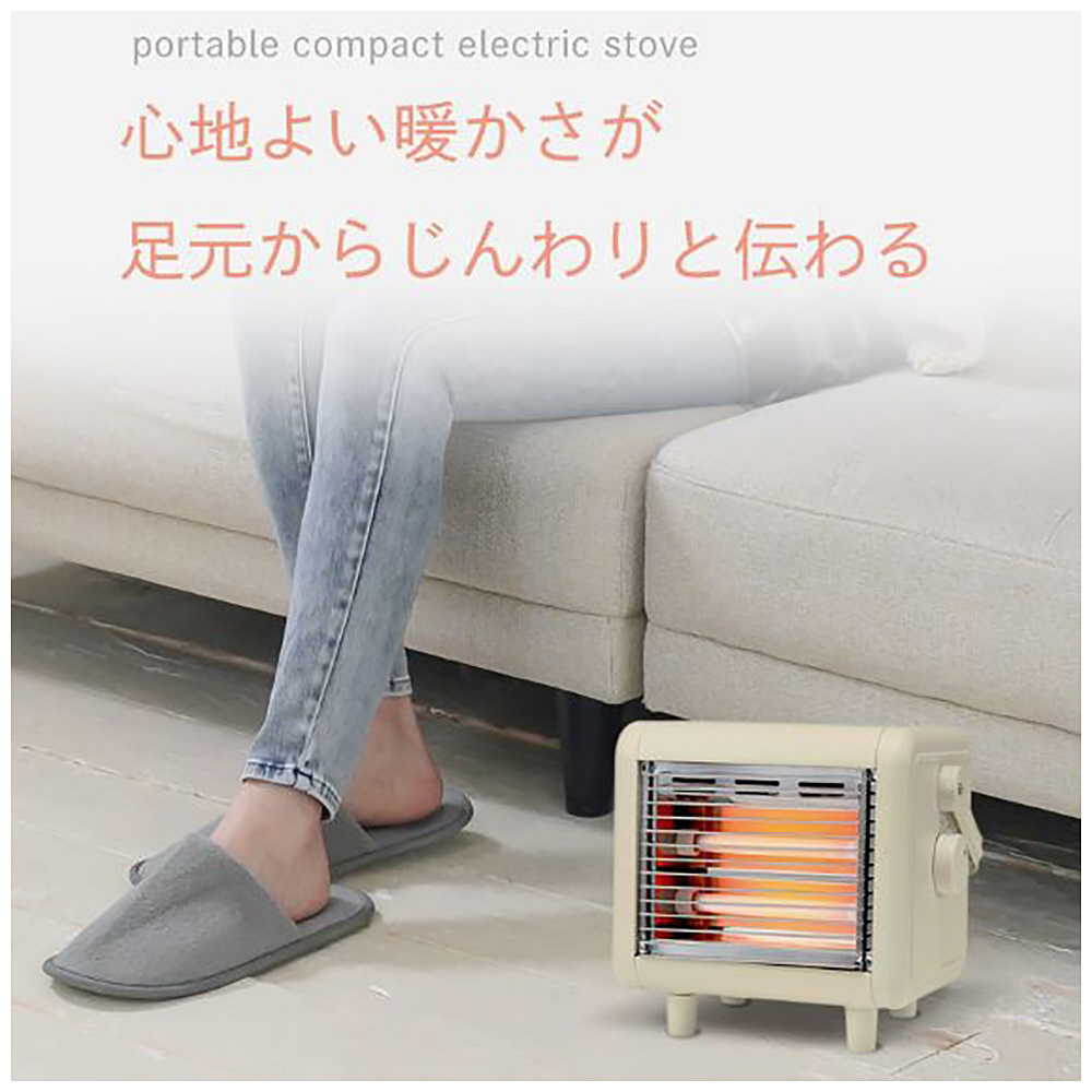 コンパクトでかわいいパーソナルミニストーブ。低消費電力で省エネ。ダイヤル式でシンプルな操作部。万一の転倒時も安心の自動オフスイッチ付き。