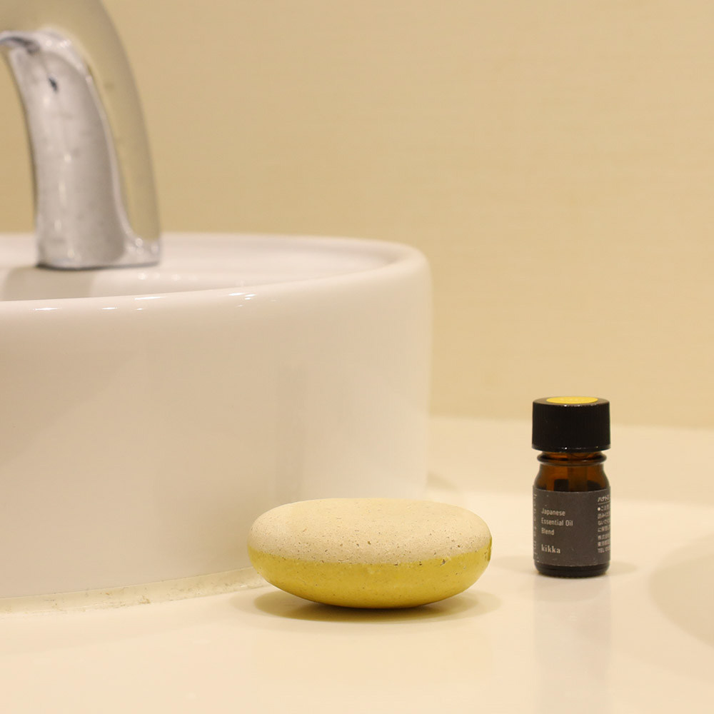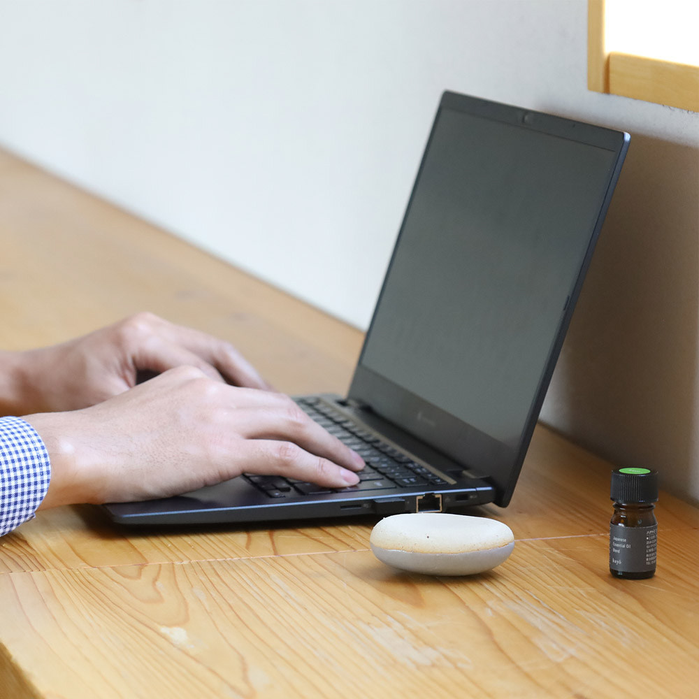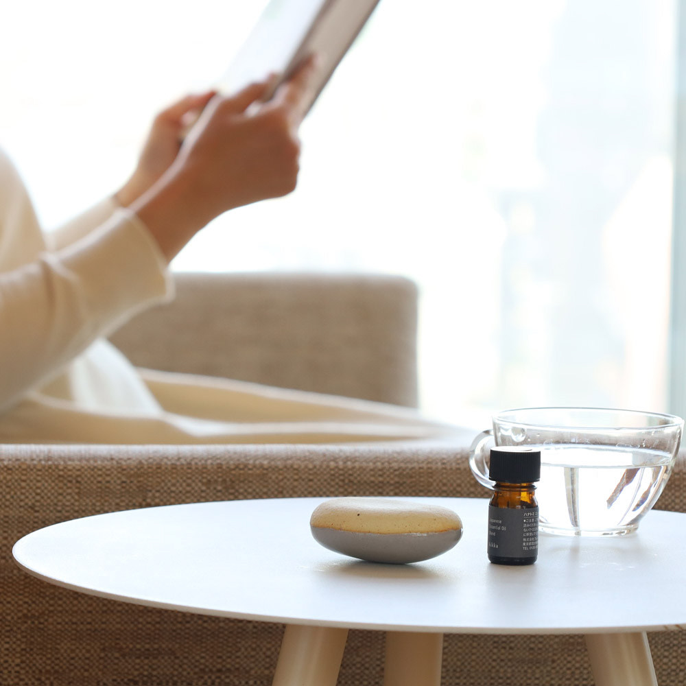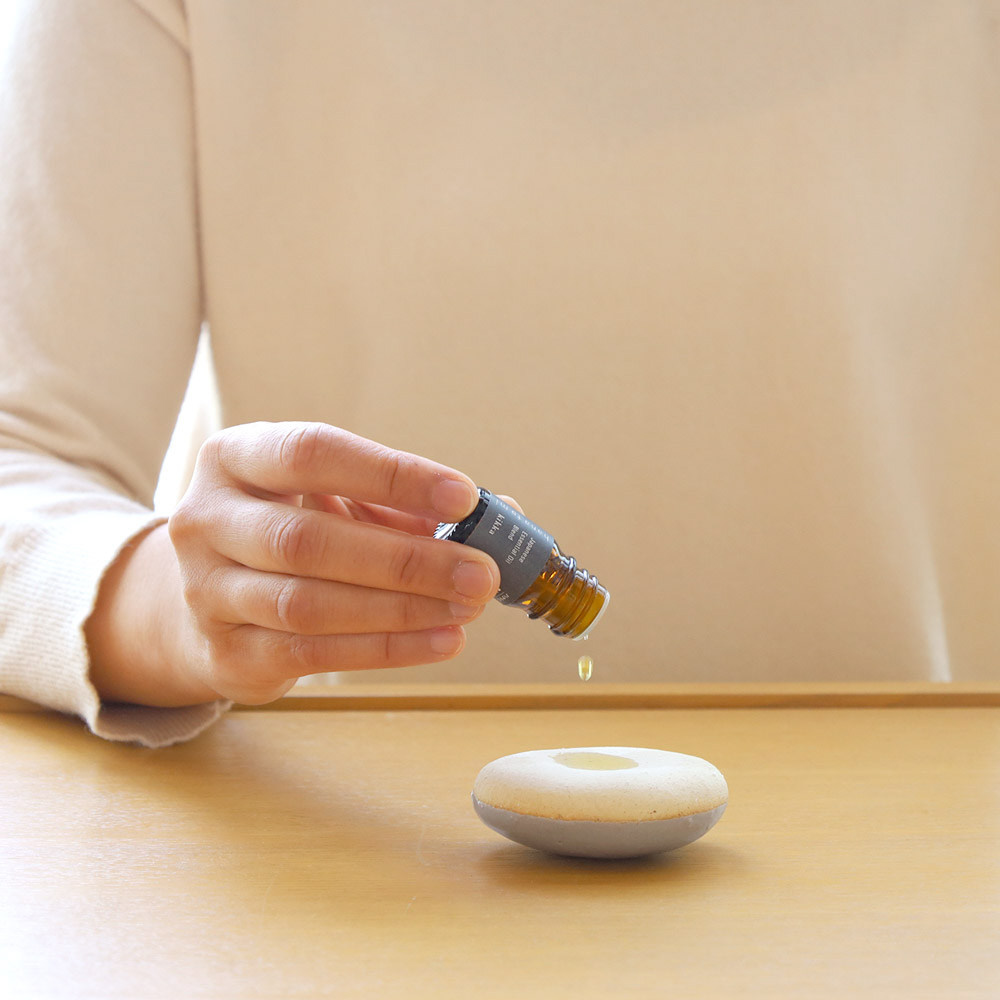 アロマストーンを平らな場所に設置し、くぼみのある面にお好みの精油を3~5滴落として香りをお楽しみください。