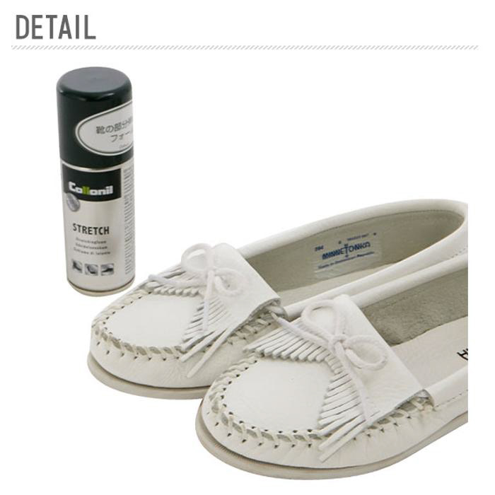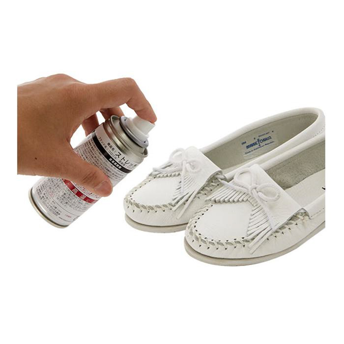 ・使用方法: 容器を良く振り布にフォームを適量取り、靴の窮屈な部分の内側と外側に塗布してください。浸透後、当たる部分を揉んで伸ばしてください。スムースレザーは乾いた後、靴の内側と外側をポリッシングクロスで乾拭きしてください。起毛毛皮は乾いた後、内側をポリッシングブラシで乾拭きし、外側はブラッシングして毛並みを整えてください。