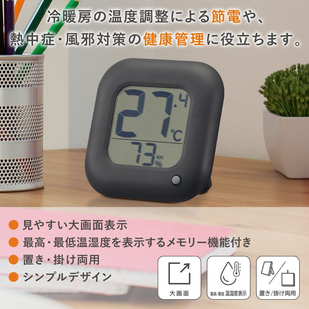 見やすい大画面表示、最高・最低温湿度を表示するメモリー機能付き