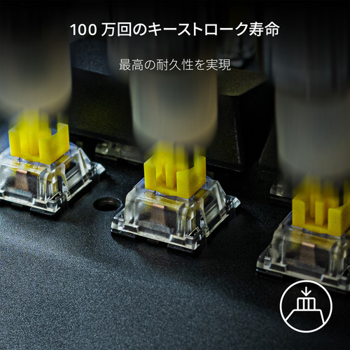音を抑える仕様により強化された Razer イエロー リニアメカニカルスイッチは静音でスムーズかつ高速の操作を実現します。このスイッチはアクチュエーションポイントとリセットポイントの距離が同じであるため、キーをできる限り速く連射することができます。