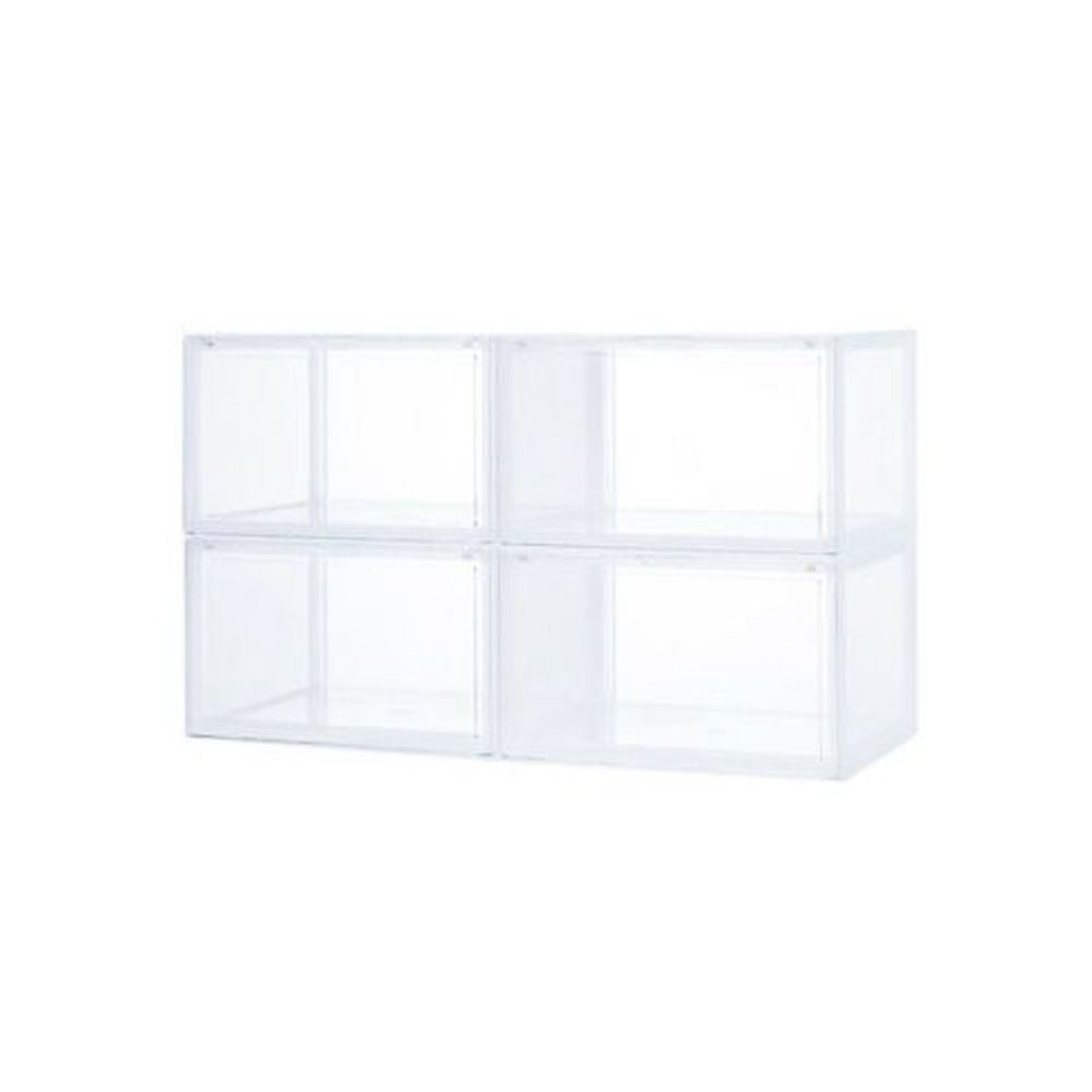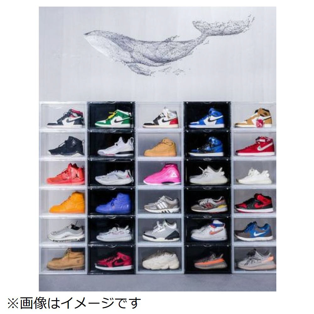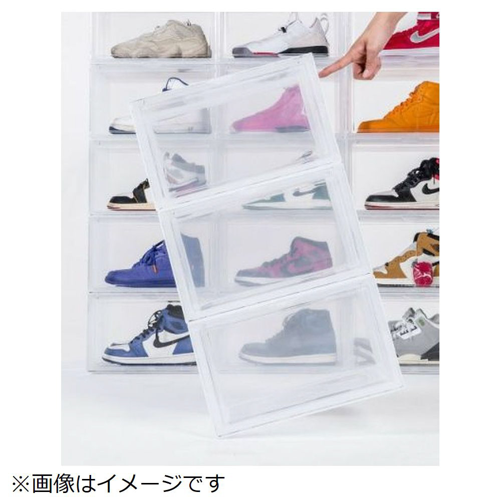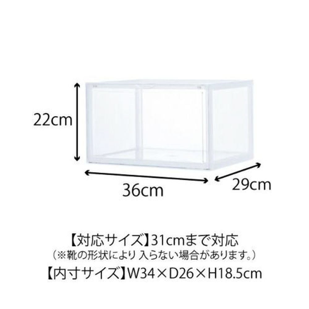 中身が見えやすい透明度の高いフタはマグネット付きでパチッと閉じられます。ハイカットの靴も入れられます。