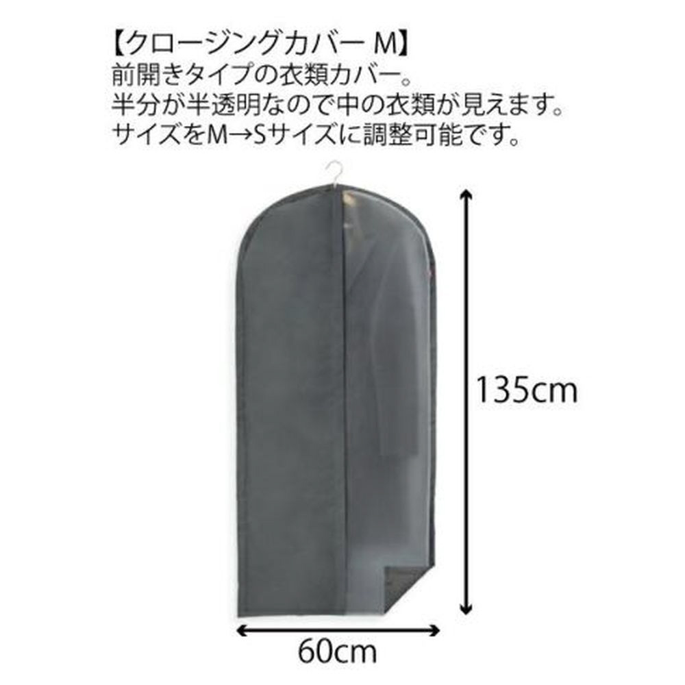 半分が半透明なので中の衣類が見える衣類カバーです。サイズをM→Sサイズに調整可能です。マチ付きで、衣服を入れやすい。通気性がよく、衣類を守ります。