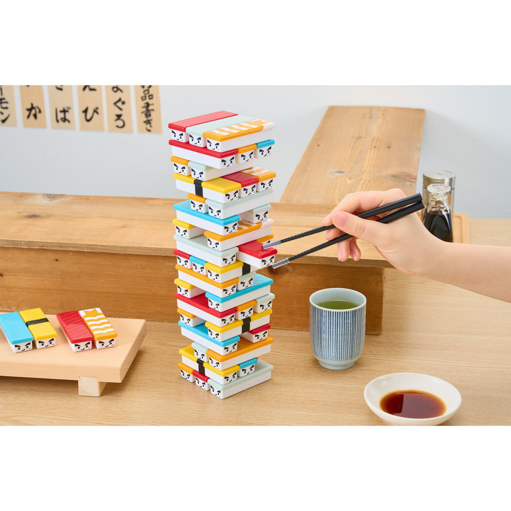 お寿司を積んでハラハラドキドキバランスゲーム。