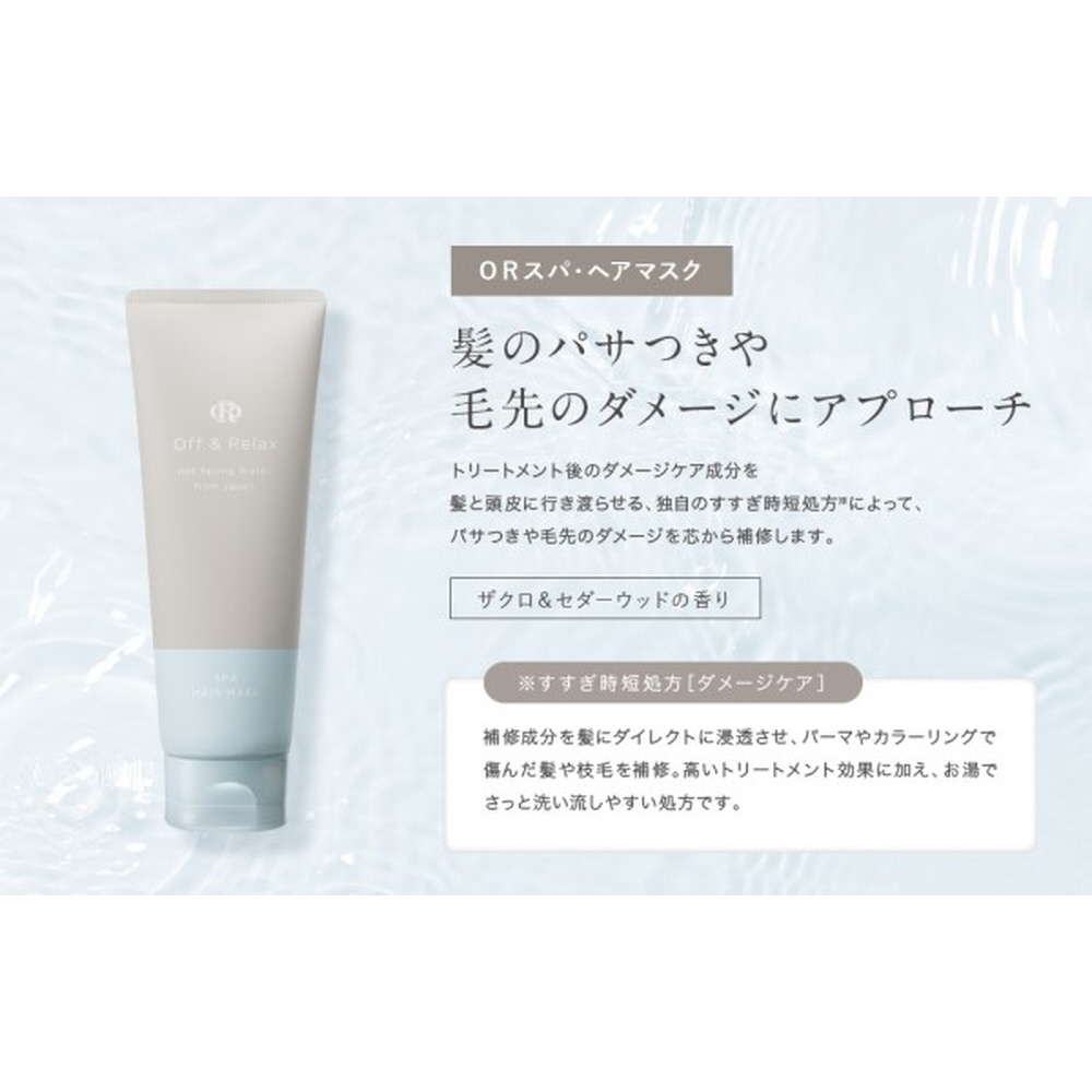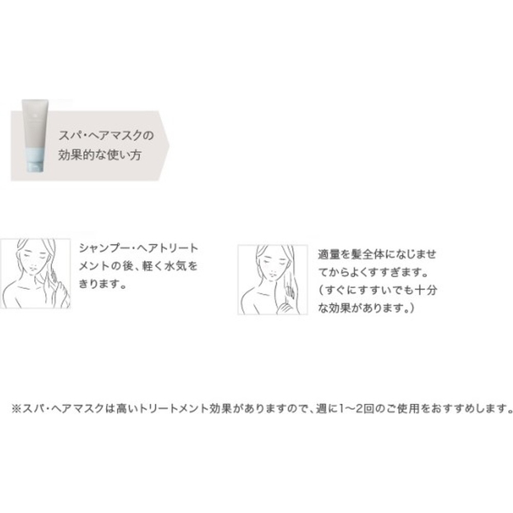 温泉水とボタニカルエッセンスを配合した独自の濃密補修処方。濃縮スマートゲルとツインタイプアミノ酸配合で、パサつきや毛先ダメージを芯から補修し、波紋の広がる美しいツヤ髪をお届けする。高いトリートメント効果がありますので、週に1〜2回のご使用をおすすめします。