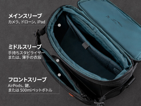 カスタマイズされたパーティーションは豊富な収納実現し、ギアを安全に保管します。