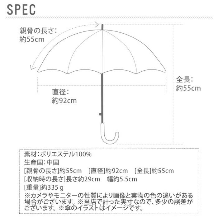 ・サイズ: [親骨の長さ] 約55cm、 [直径] 約92cm、 [全長] 約55cm