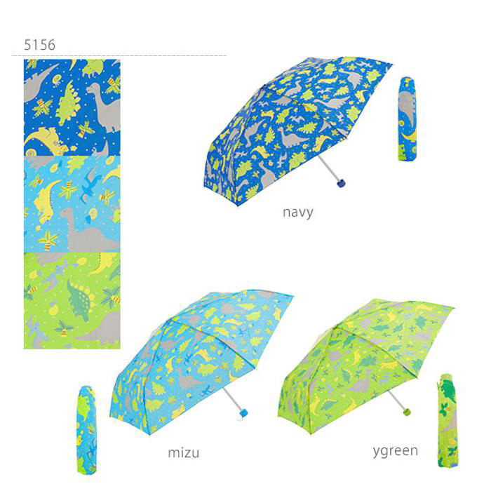 恐竜や乗り物、海の動物など、可愛いデザインが施された子ども用折りたたみ傘。