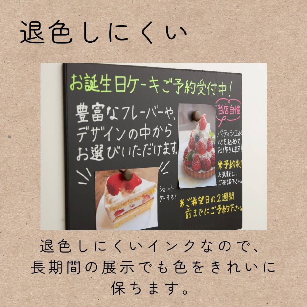 乾くと乾拭きでは落ちなくなるので、書いたものがこすれすぎずきれいな状態で長く掲示できます。