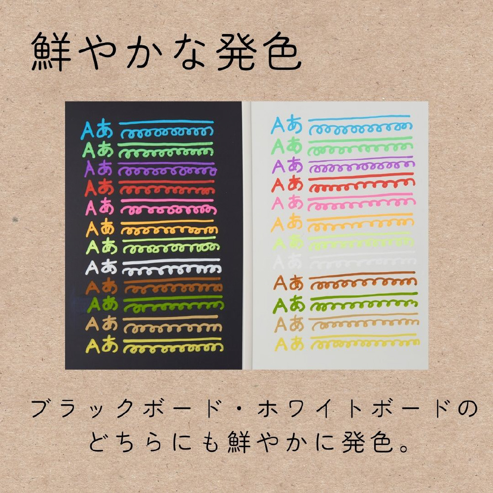 ブラックボード・ホワイトボードのどちらにも鮮やかに発色。