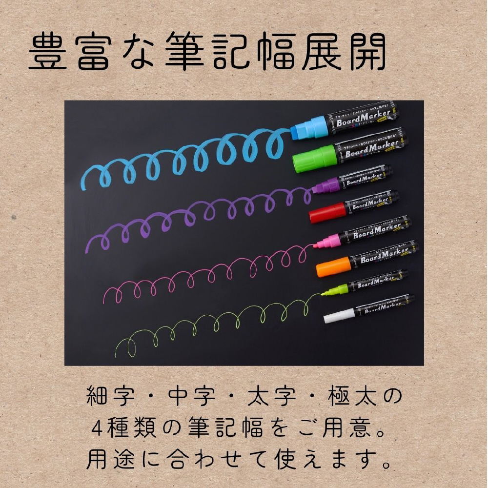 特徴:ホワイトボード、ブラックボード、ガラス、アクリルに筆記可能