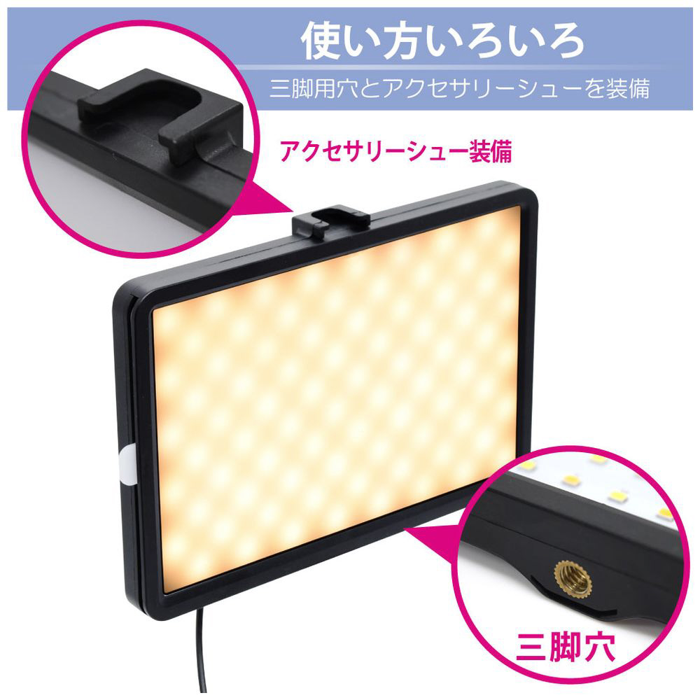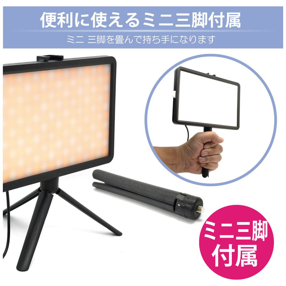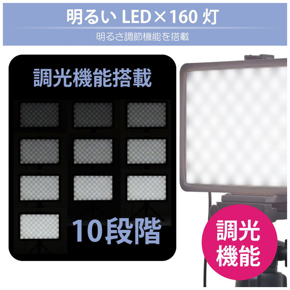 160 灯のLED と3 段階の調色機能で明るさや色温度を調節できキレイに撮影できます。