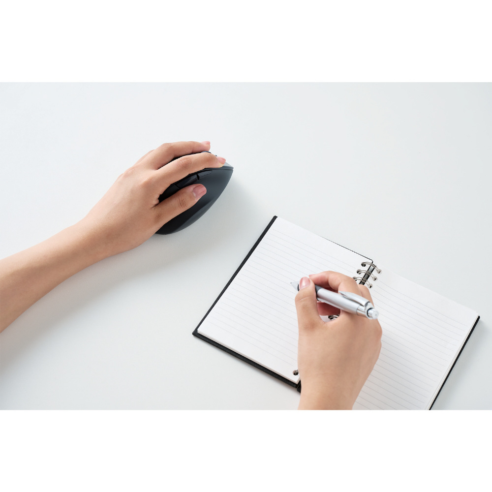 一般的なマウスと異なり、右側に左クリックを配置した、人差し指で主な操作ができる左手専用設計です。 左利きの方はもちろん、右手でメモ書きや電話など別の作業をしたい方にもおすすめです。
