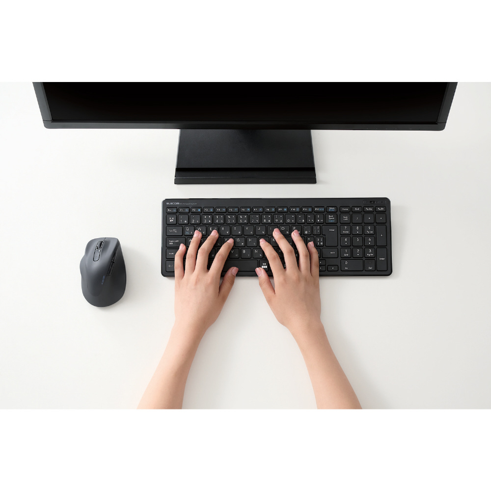 パソコンのUSBポートにレシーバーを挿すだけで、すぐに使用できるワイヤレスタイプです。