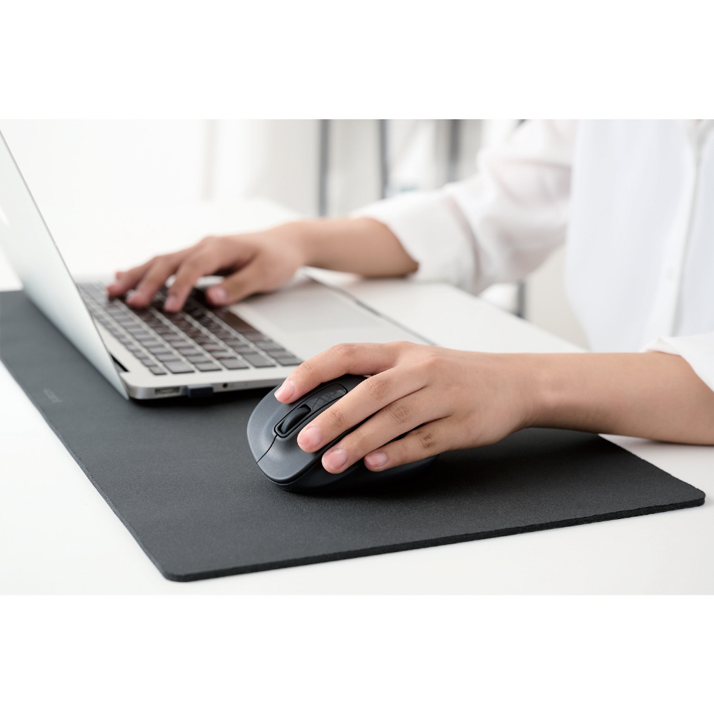 小さい凹凸やホコリがある環境でも正確にポインターを動かせる“BlueLEDセンサー”を搭載することで、木材・樹脂・ガラス製のデスクや、ノート、テーブルクロスの上などでも快適に操作できます。