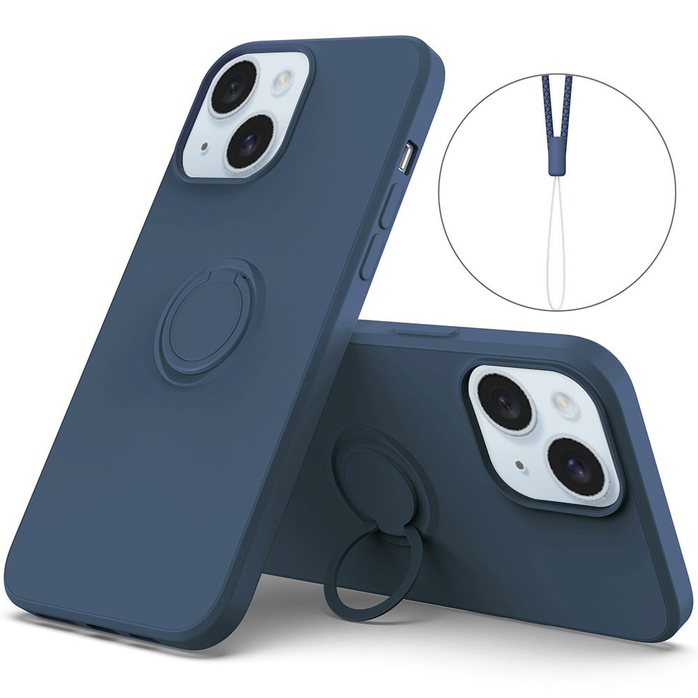 iPhone 15 シリコン製ケース リング付 ネイビーブルー RM-15Sili-NV