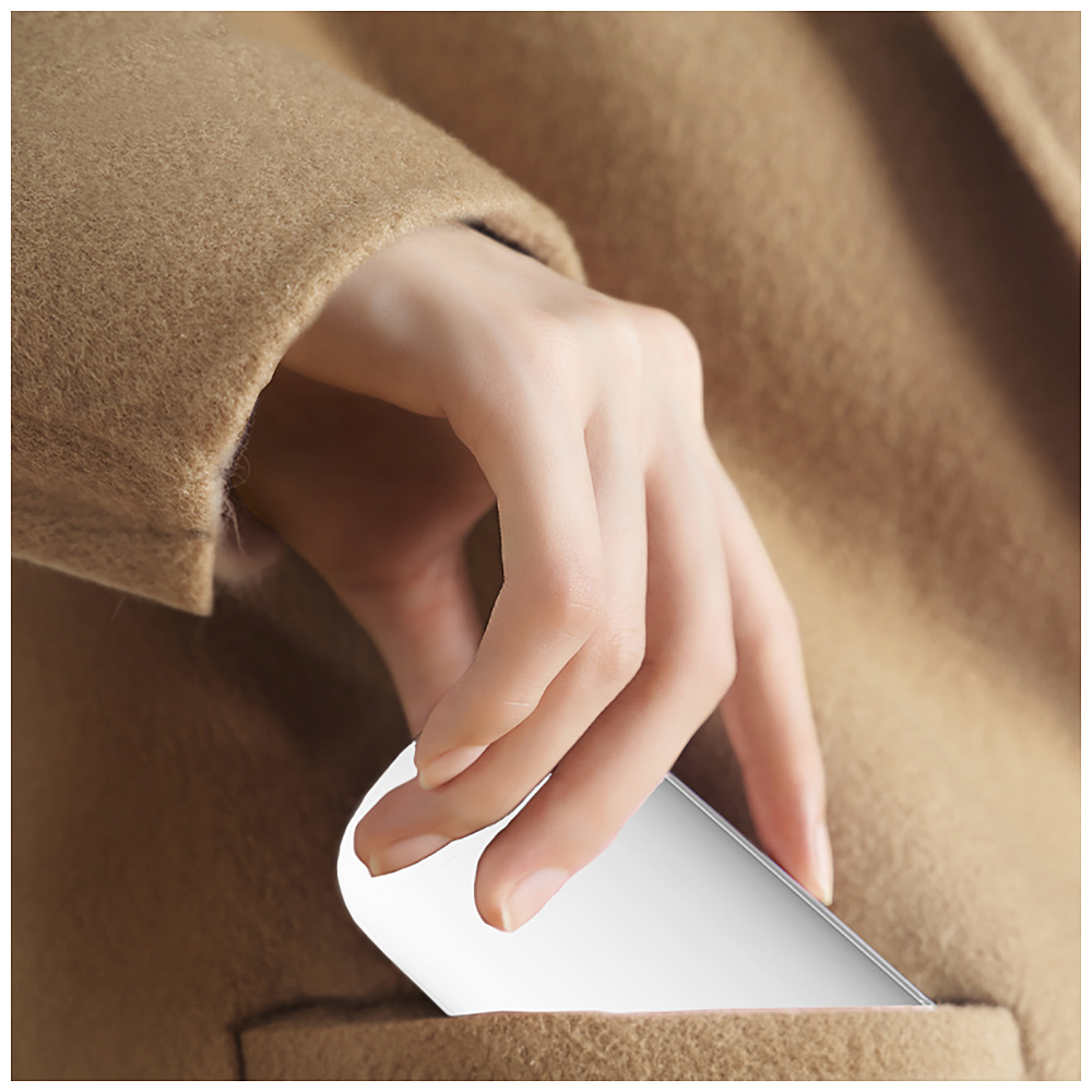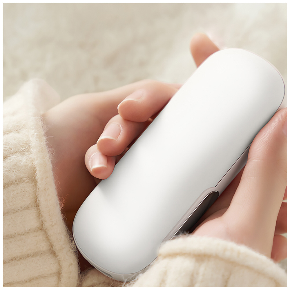2段階加熱モードあったかモバイルバッテリー。スマートチップ搭載により均等に発熱。モバイルバッテリー機能搭載でスマートフォンに充電できます。