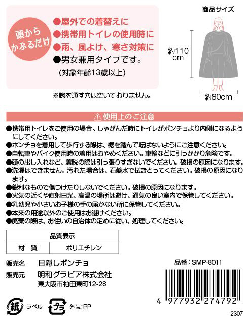 目隠しポンチョ 明和グラビア
