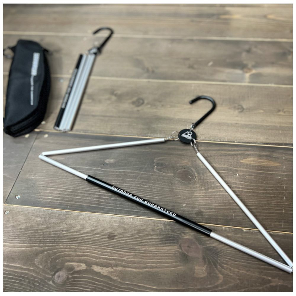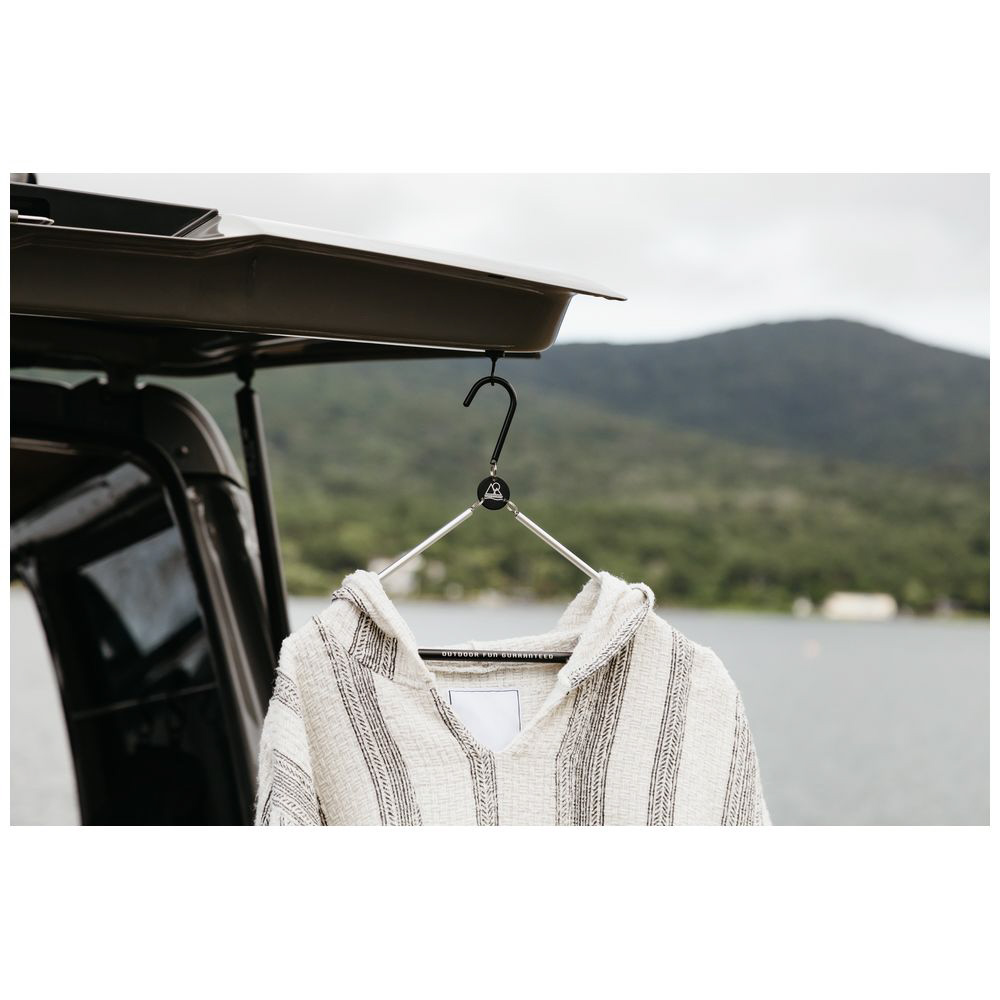 コンパクトに折りたためて、持ち運びができるトラベルハンガー。