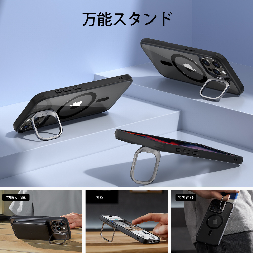 iPhone 15 Pro Max(6.7インチ)スタンド付ハイブリッドケース ESR Clear Black ClassicHybridCasewithStandHaloLockforiPhone15ProMa