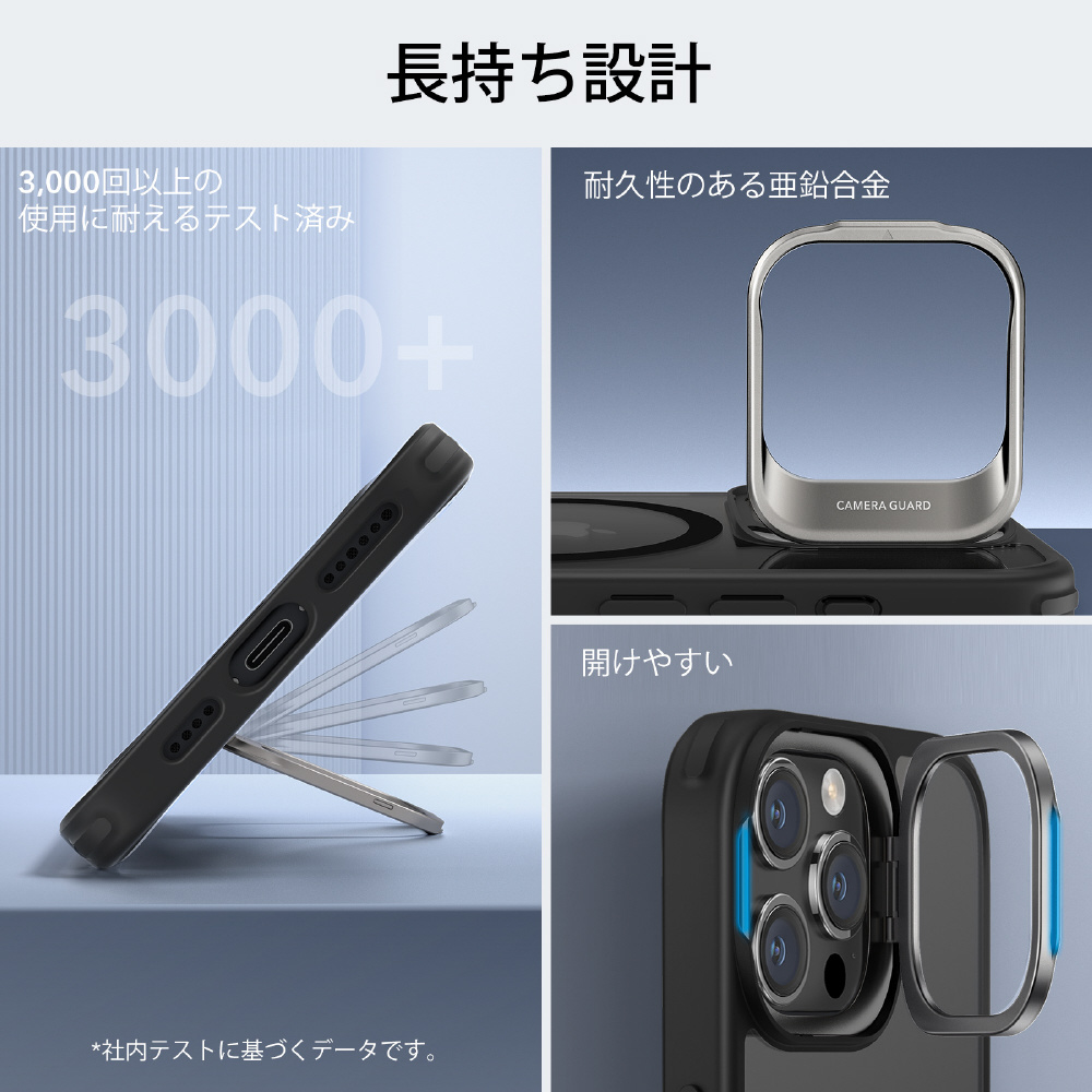 折りたたんだときにカメラのフレームに隠れるように配置され、MagSafeリングを100%妨げず、いつでもどこでも自由に調整でき、安定した角度で動画を視聴できます。