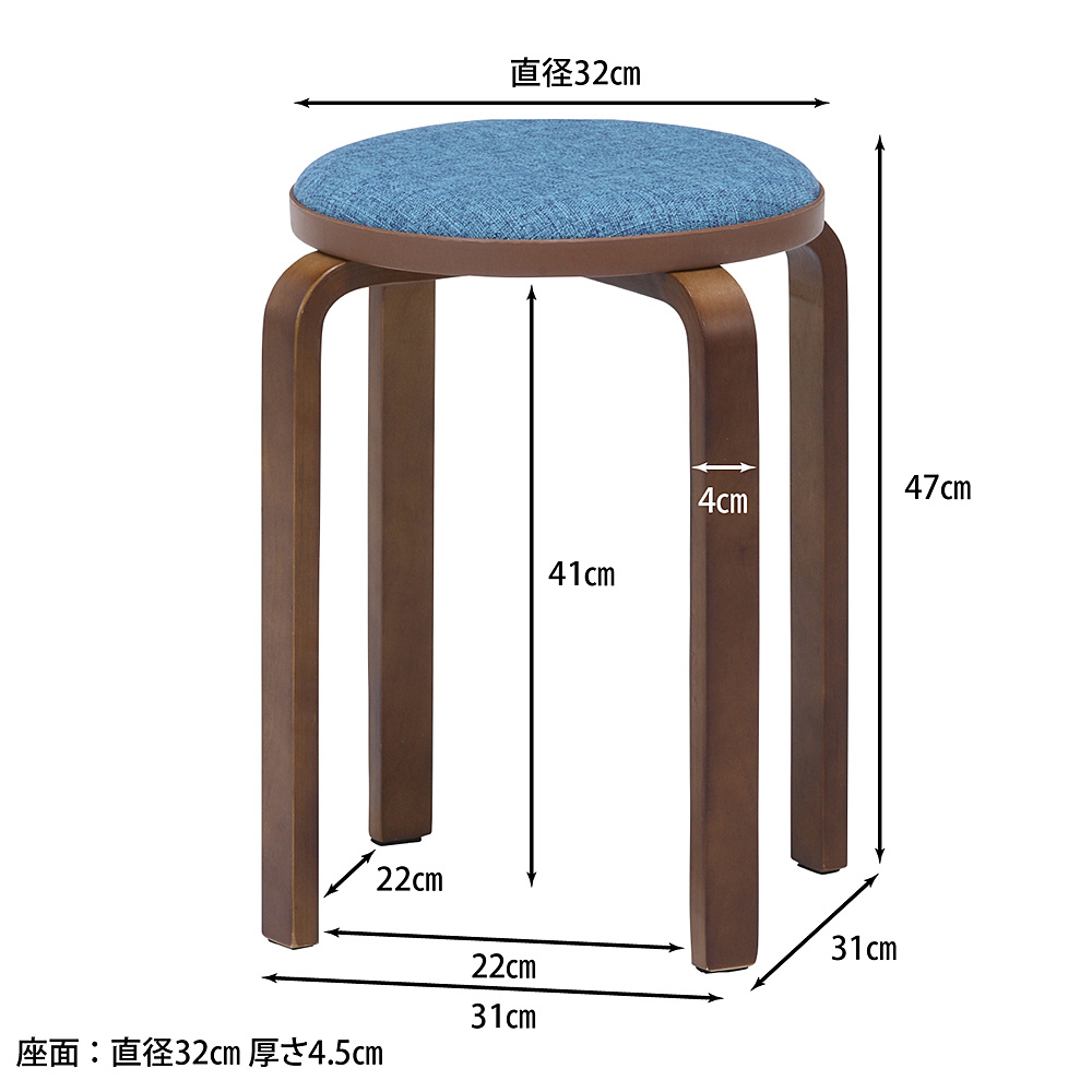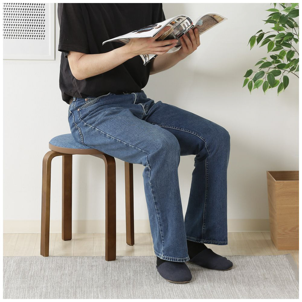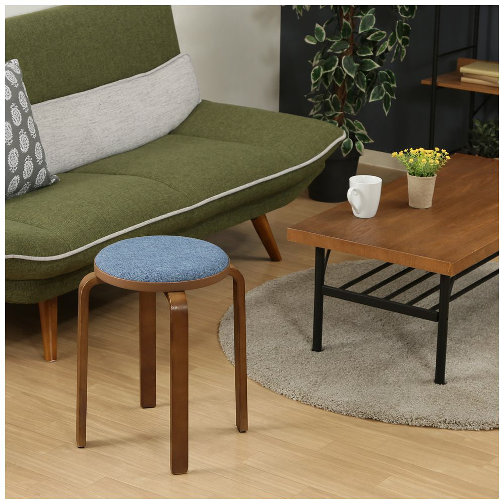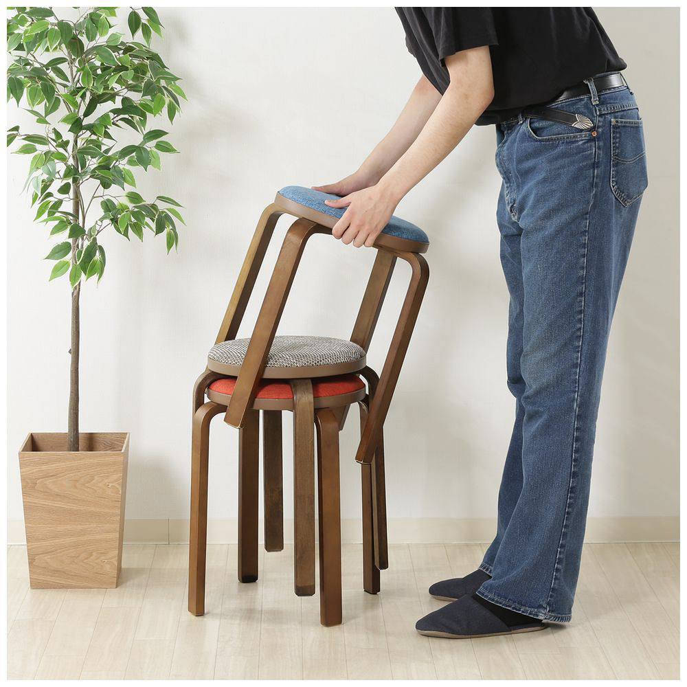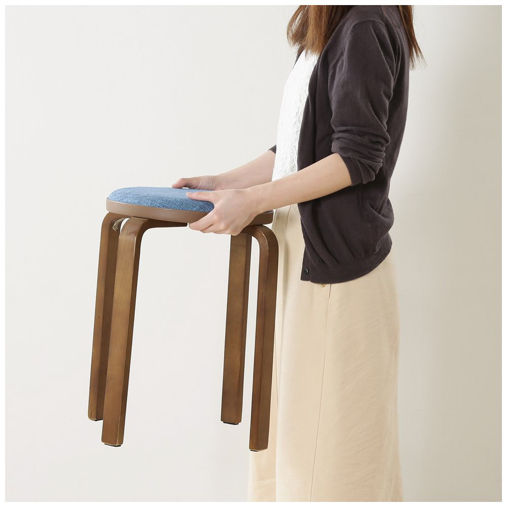 KDファブリック曲木スタッキングスツール ブルー/ブラウ 14547