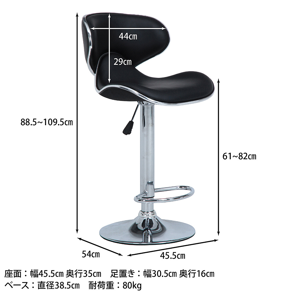 ■61〜82cmで調節でき、身長やカウンターの高さに合わせて快適に使用できます。