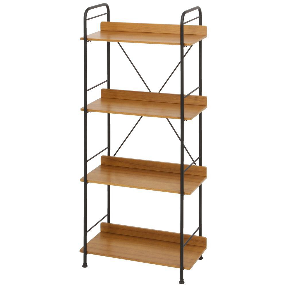 空間を引き締めるブラック×ウッド調マルチシェルフ。