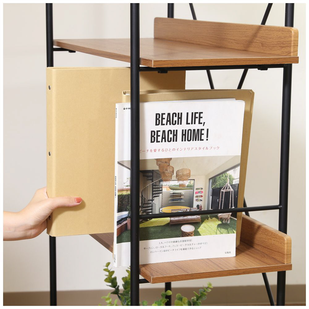 ■棚の側面には書籍などを立てた際に倒れないようにする、転落防止バーがついているので安心です。