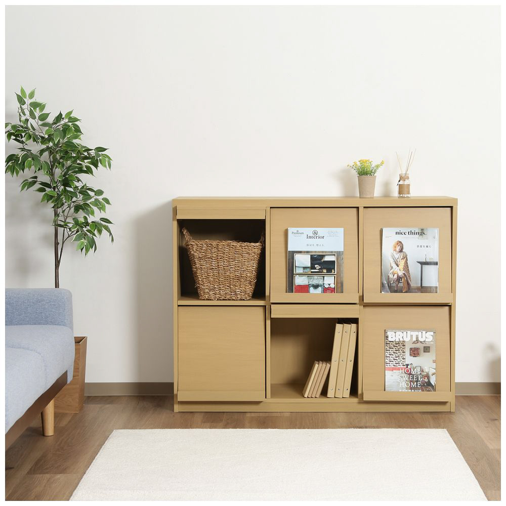 ■分割された収納スペースと魅せるフラップ扉で、お気に入りの雑誌などを飾ってオリジナルのインテリアとして楽しめます。