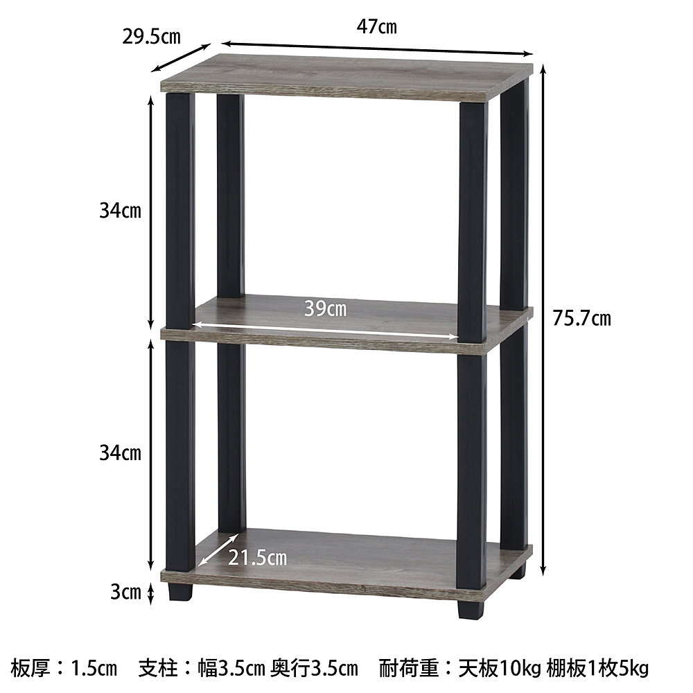 工具不要で簡単組み立て!おしゃれに見せる3段オープンラック。